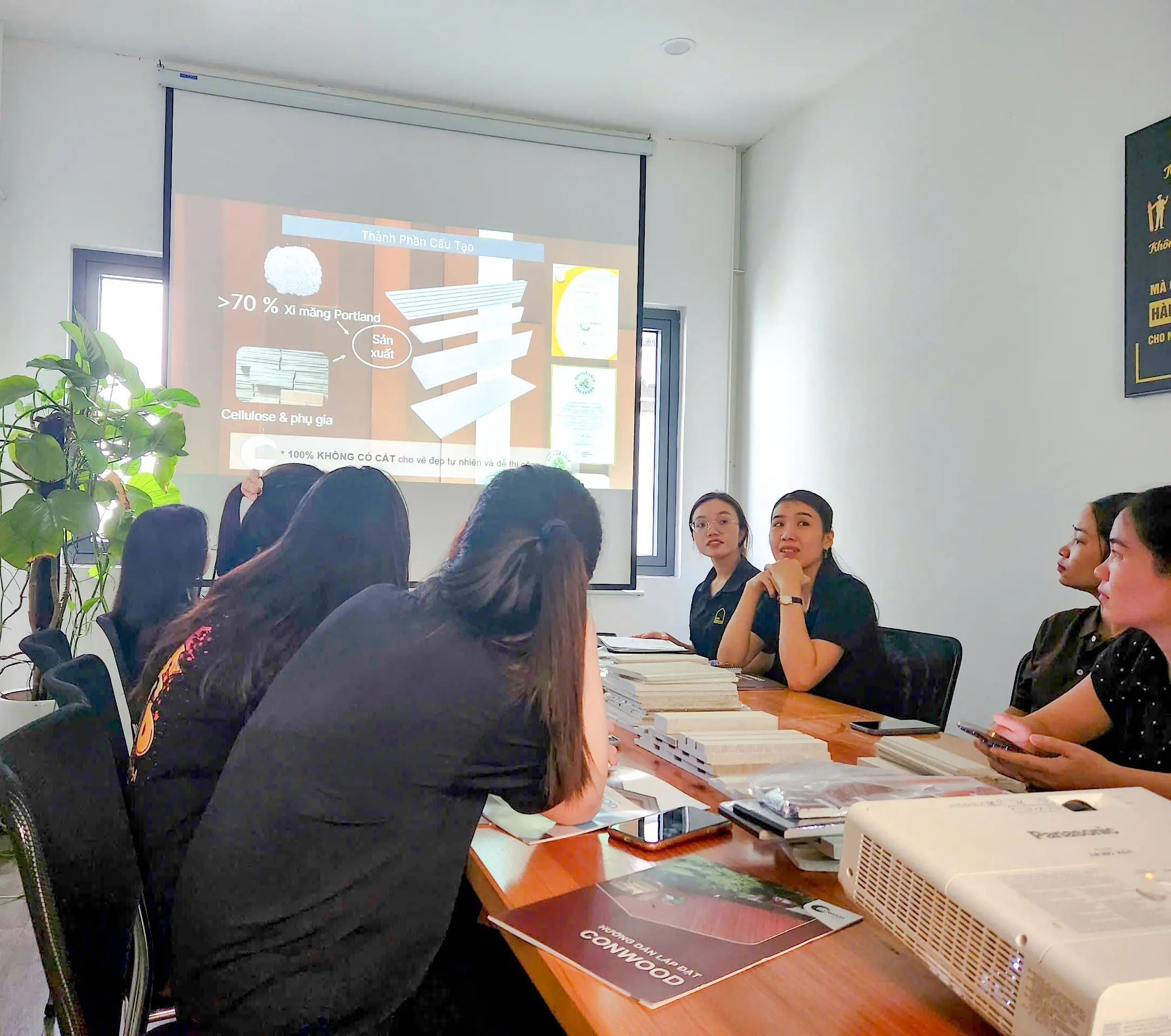 Mới đây, phòng Kế hoạch đã có một buổi chia sẻ về vật liệu Conwood do nhà cung cấp đào tạo. Với những kiến thức cùng những ví dụ thực tiễn về cách ứng dụng Conwood trong các công trình. Buổi đào tạo giúp các thành viên trong phòng nắm vững thông tin về sản phẩm, hướng đến mục tiêu nâng cao hiệu quả trong cách tư vấn cho chủ đầu tư.