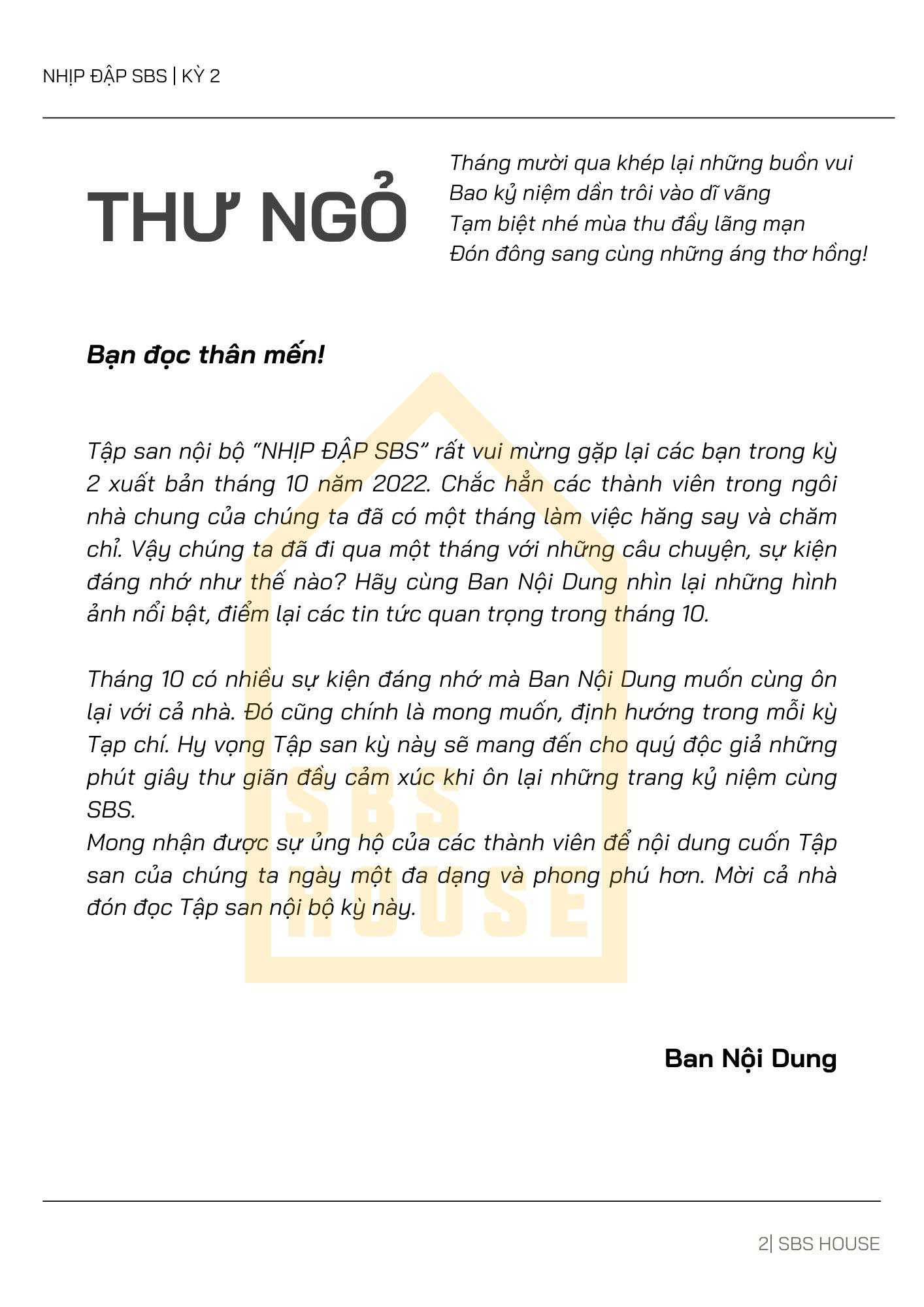 Sau một tháng “ở ẩn”, Tạp chí nội bộ [ NHỊP ĐẬP SBS] Kỳ 2 năm 2022 đã comeback với nhiều chuyên mục đặc sắc mà cả nhà không thể bỏ lỡ.