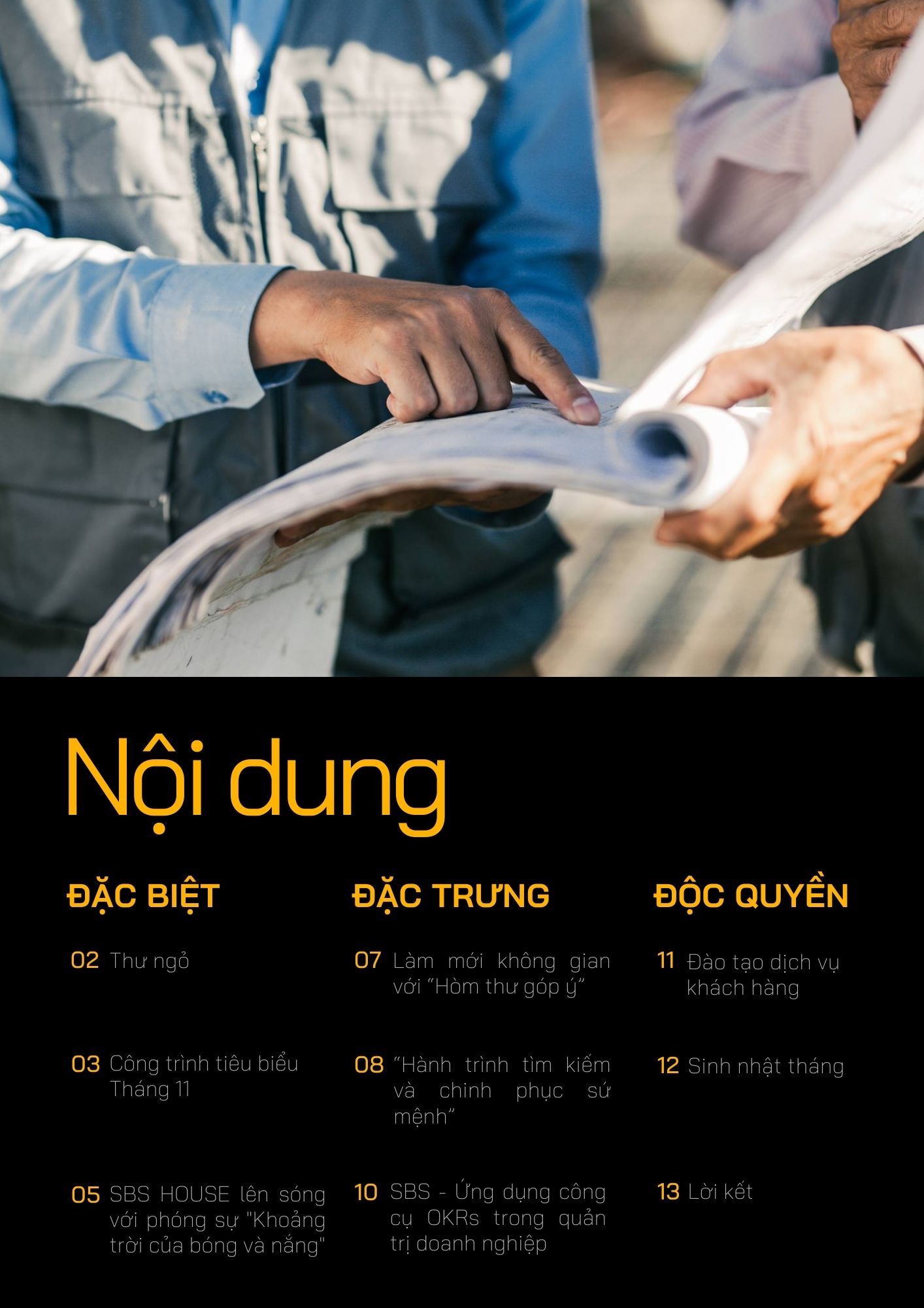 Với nhiều chuyên mục vô cùng hấp dẫn đang chờ quý độc giả cùng khám phá như: Những công trình tiêu biểu, những sự kiện trong tháng và nhiều chuyên mục khác không thể bỏ lỡ. Tạp chí hứa hẹn sẽ mang lại nhiều cảm xúc khác nhau cho quý độc giả. Ban Nội Dung gửi vào ấn phẩm này lời tri ân chân thành nhất tới tất cả SBSer- những bạn đọc đã đồng hành và hỗ trợ để Ban Nội Dung hoàn thành được ấn phẩm.