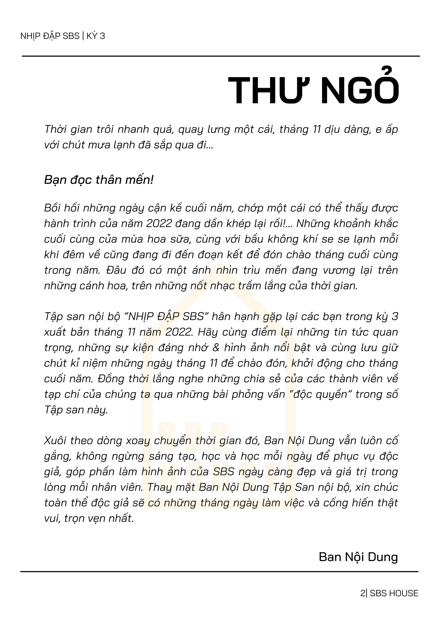 SBS hân hạnh chào đón các độc giả thân thiết quay trở lại với Tạp chí nội bộ [NHỊP ĐẬP SBS] Kỳ 3 năm 2022.