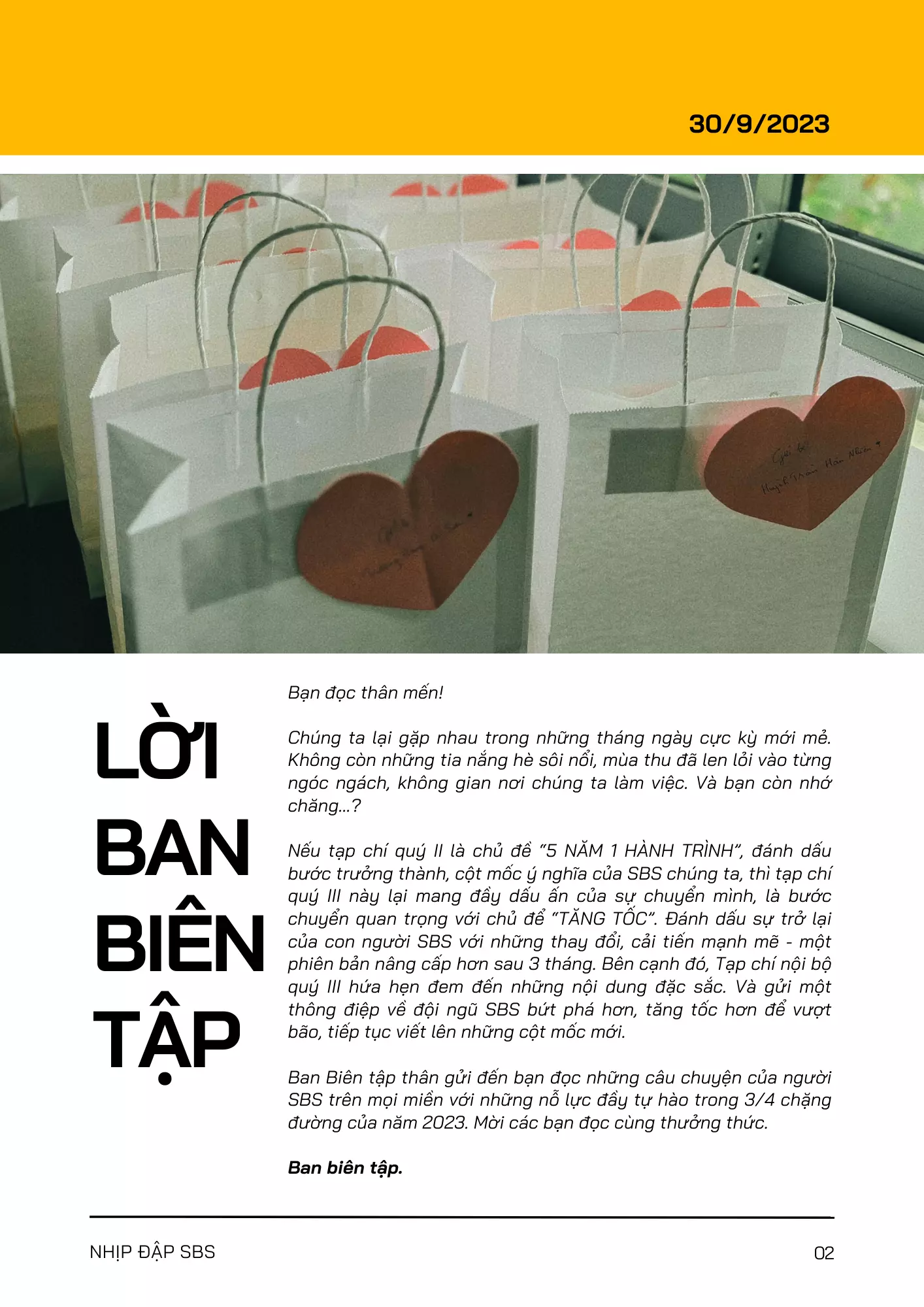 Với SBS, thêm một dấu mốc thời gian, là một lần công ty có cơ hội nhìn lại chặng đường mình đi qua và chuẩn bị nước rút để 3 tháng cuối năm có thể cán đích rực rỡ. Có những bước tiến mới, nhưng cũng có những nốt trầm. SBS nhìn vào thành công để tự hào, nhưng cũng không vì những trở ngại, khó khăn mà chùn bước. Tinh thần con người SBS vẫn hừng hực cháy trên khắp nẻo đường đi qua.