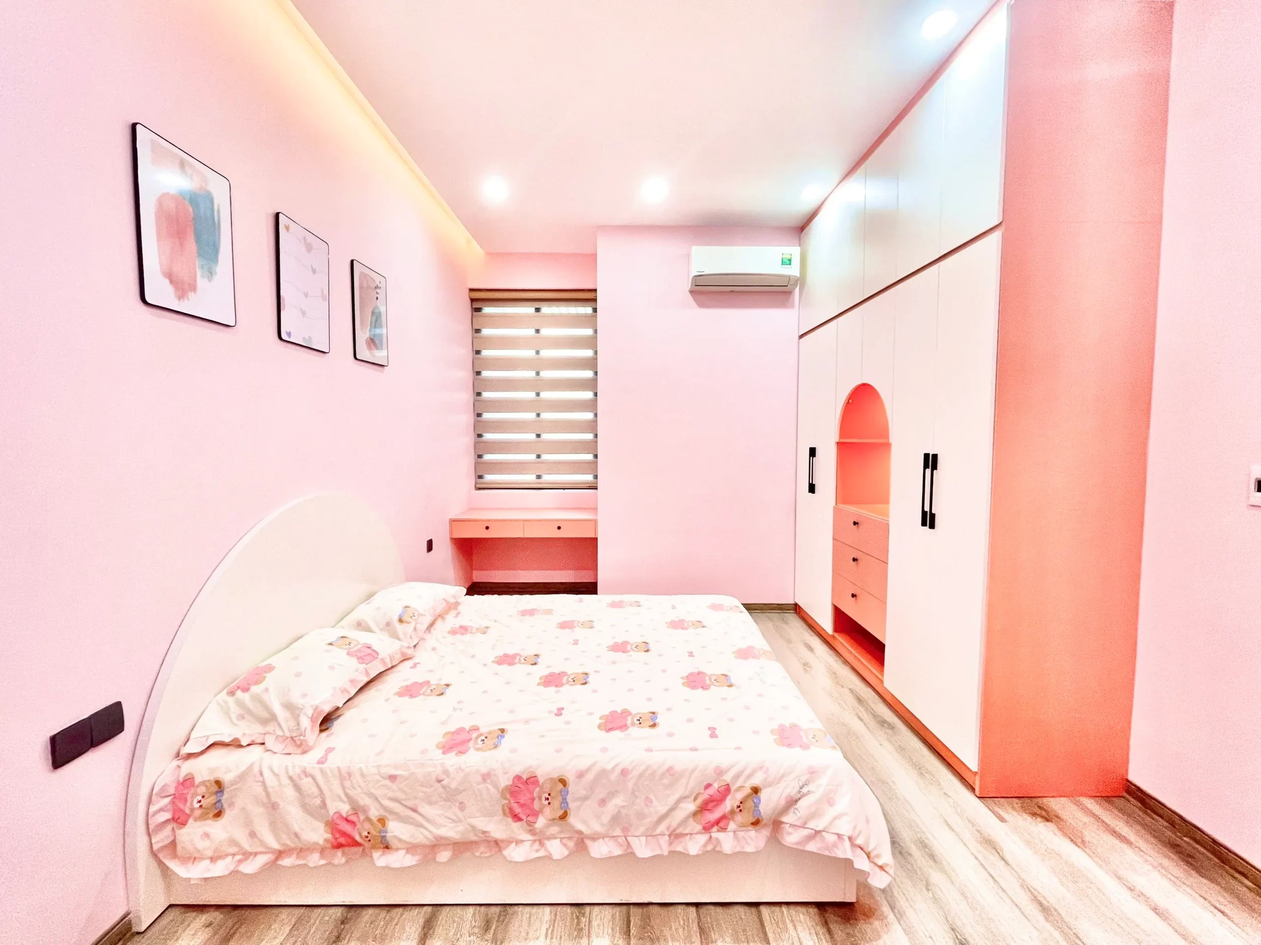 Màu hồng được chọn làm tone màu chủ đạo trong căn phòng cô con gái xinh xắn của gia chủ. Từ màu sắc đến cách bố trí, họa tiết đều mang những nét dễ thương và nhẹ nhàng uyển chuyển.Một căn nhà không chỉ đơn giản mang hình hài từ những mảng tường, bê tông vững chắc được dựng lên. Trong đó gia chủ phải cảm nhận được sự thoải mái, tương thích với những mong muốn, nhu cầu và lối sống mà chủ nhà hướng đến. Một công trình hiện đại – xanh thoáng – tiện nghi luôn là điều mà SBS HOUSE hướng đến và nỗ lực để đạt được trong mỗi tổ ấm mình được chủ đầu tư tín nhiệm. Chúng tôi luôn sẵn sàng đồng hành cùng bạn trên hành trình xây dựng ngôi nhà mơ ước của mình. Đừng ngần ngại liên hệ ngay hôm nay để được tư vấn và khái toán chi phí nhanh chóng nhất!