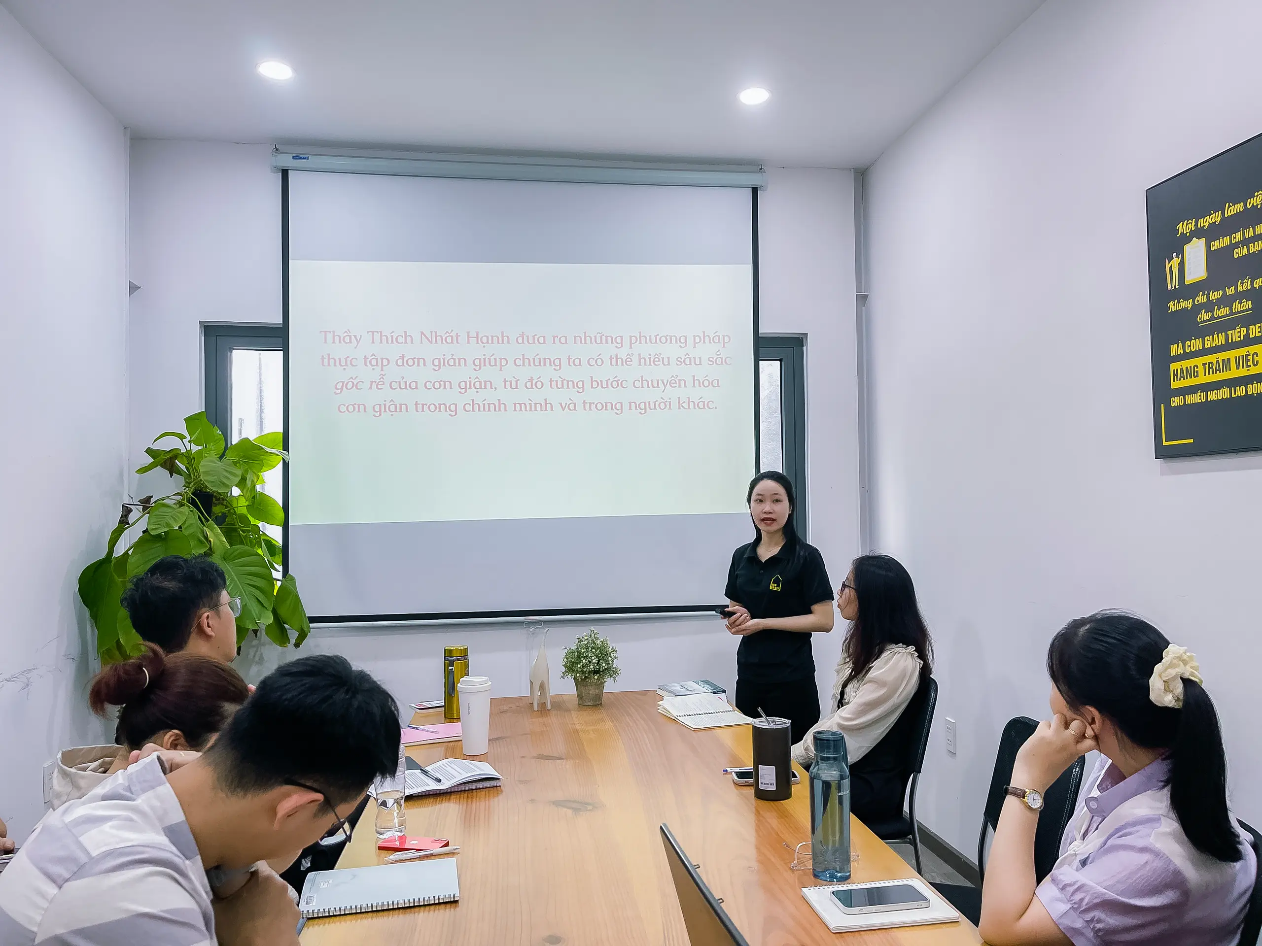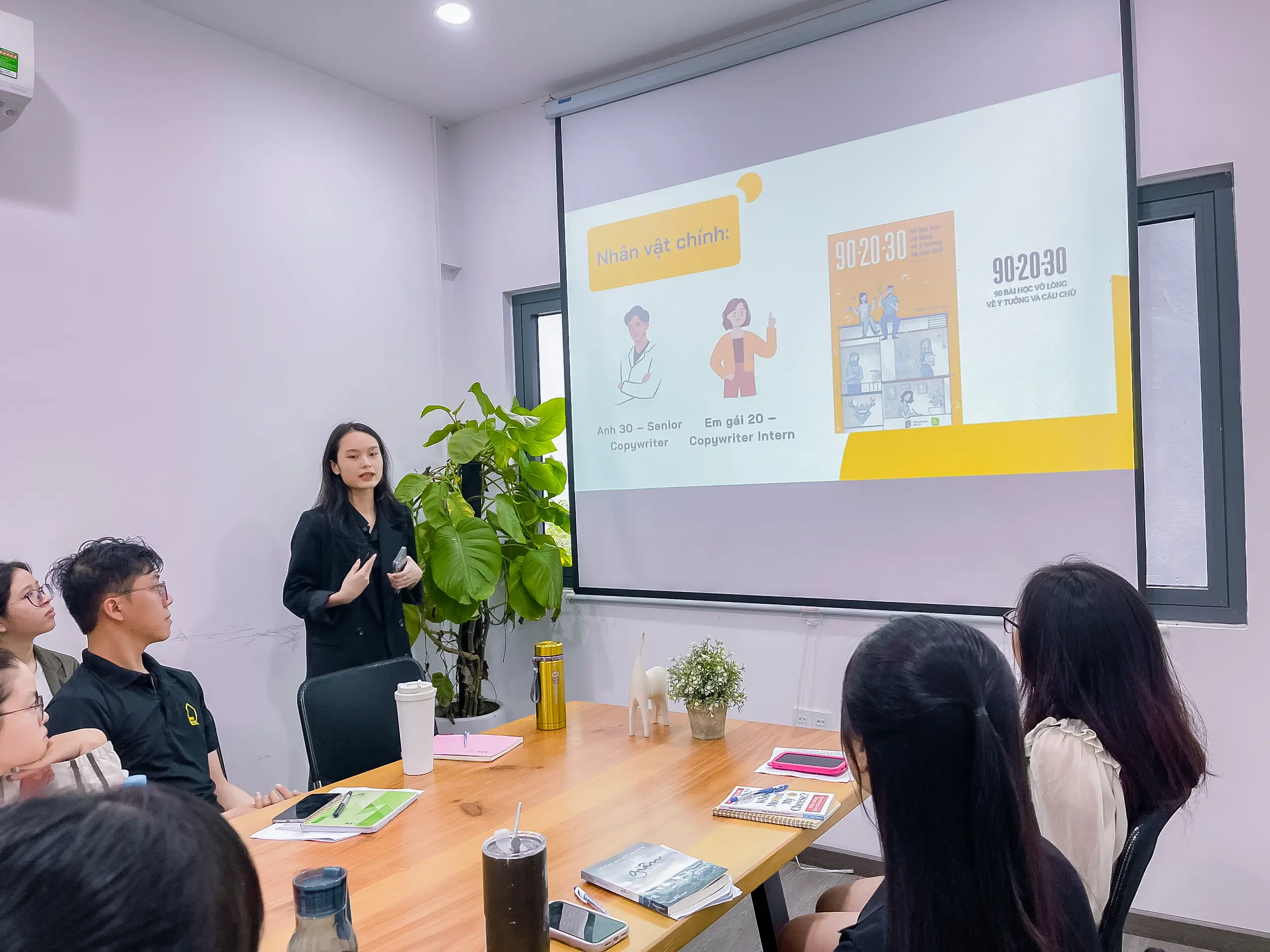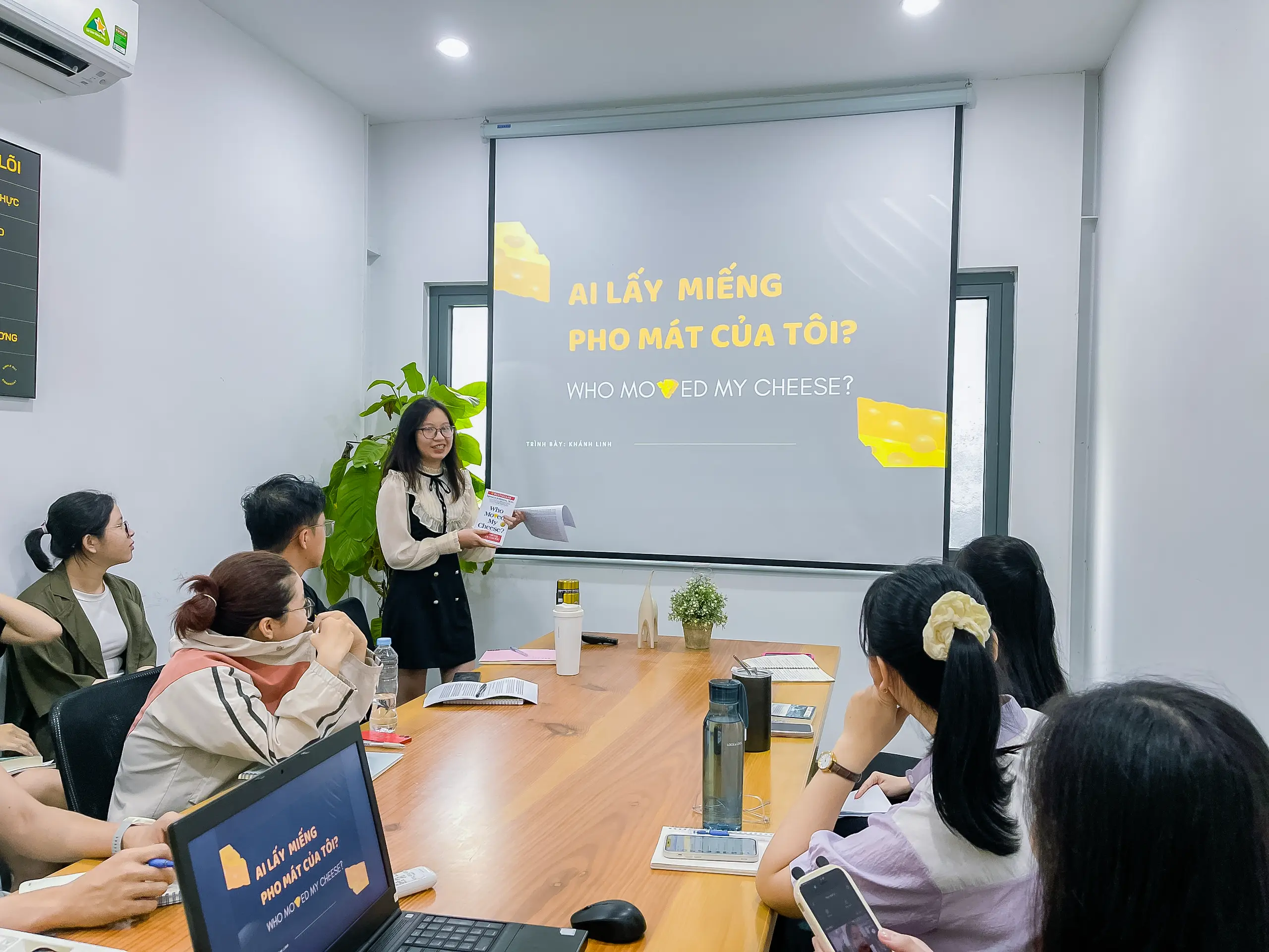 Theo chia sẻ của Quỳnh Nhi – Nhân viên Content Marketing cho biết: “Đây là lần đầu tiên mình tham dự buổi báo cáo sách, cũng là lần đầu tiên giới thiệu cuốn sách mình đã đọc đến tất cả mọi người. Đối với mình buổi báo cáo sách không chỉ đơn thuần là khoảng thời gian mọi người trình bày về cuốn sách yêu thích mà còn là nơi để kết nối, chia sẻ những suy nghĩ, cảm nhận và kinh nghiệm của từng cá nhân. Bên cạnh đó, từ những thông tin hay ho mọi người cung cấp, đã giúp mình có góc nhìn mới mẻ hơn về các khía cạnh của công việc, cuộc sống và đúc kết được một vài điều tâm đắc cho bản thân.”