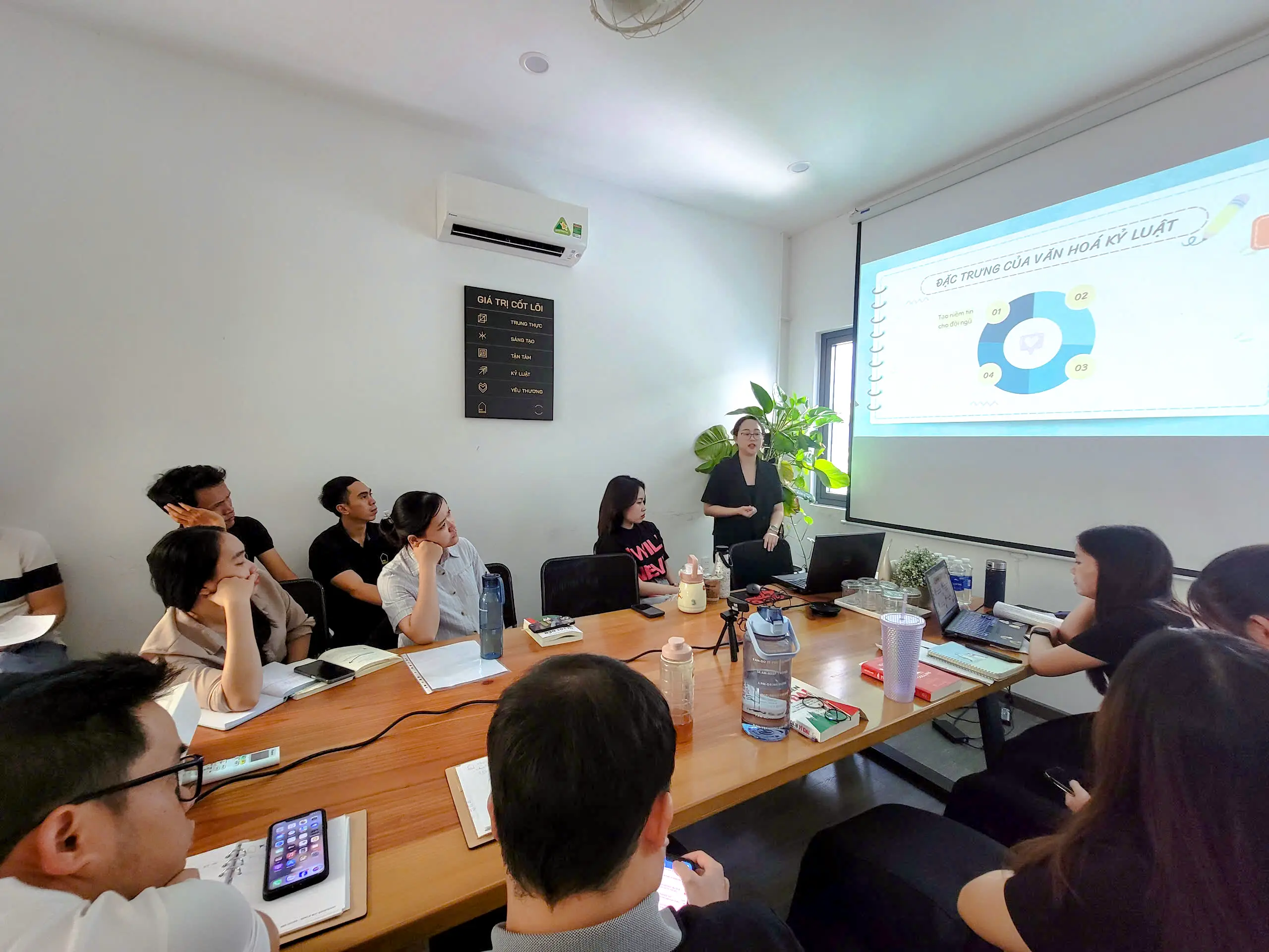 – À, đó là một nét văn hóa rất đặc trưng của công ty. Chúng mình không chỉ đọc mà còn chia sẻ lại những gì đã học, đã áp dụng được với đồng nghiệp. Điều tuyệt vời là qua mỗi buổi chia sẻ, chị luôn thấy bản thân học thêm được nhiều điều từ góc nhìn của người khác. Như một cách mình tiếp cận thế giới từ những góc độ mới.