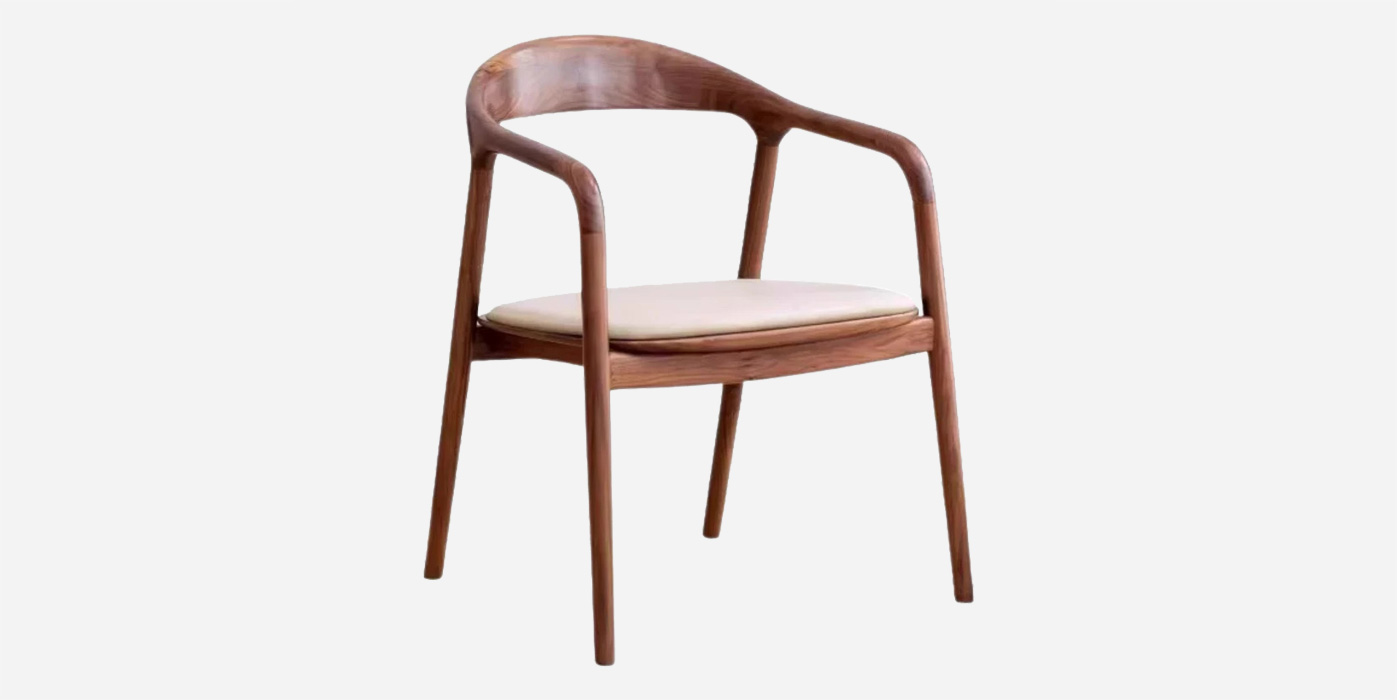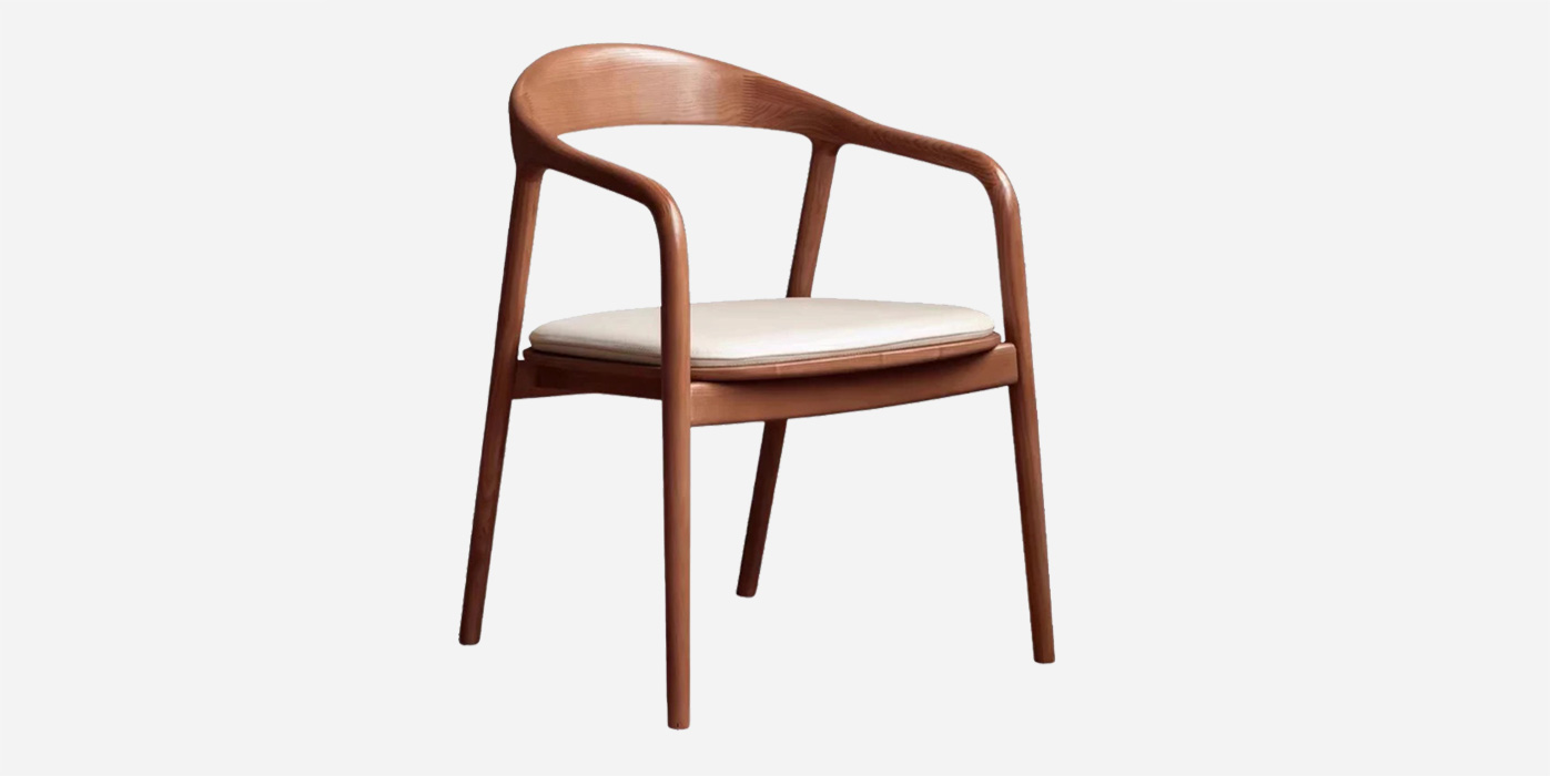 Phần tựa và tay vịn của ghế được gia công tinh tế, tạo cảm giác nhẹ nhàng nhưng vững chắc. Ghế được hoàn thiện bằng dầu sáp gỗ tự nhiên, giúp bảo vệ và giữ nguyên vẹn vẻ đẹp tự nhiên của gỗ. Đệm ngồi mềm mại với lớp bọc da nhân tạo cao cấp, dễ dàng vệ sinh và mang lại cảm giác êm ái khi ngồi.