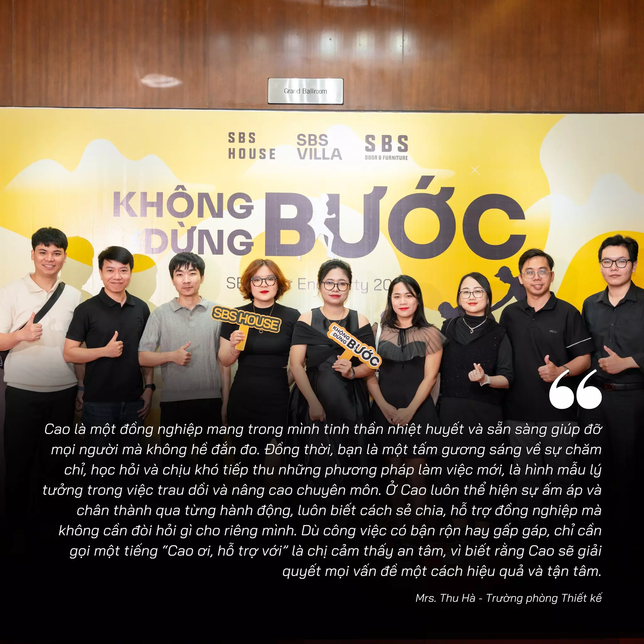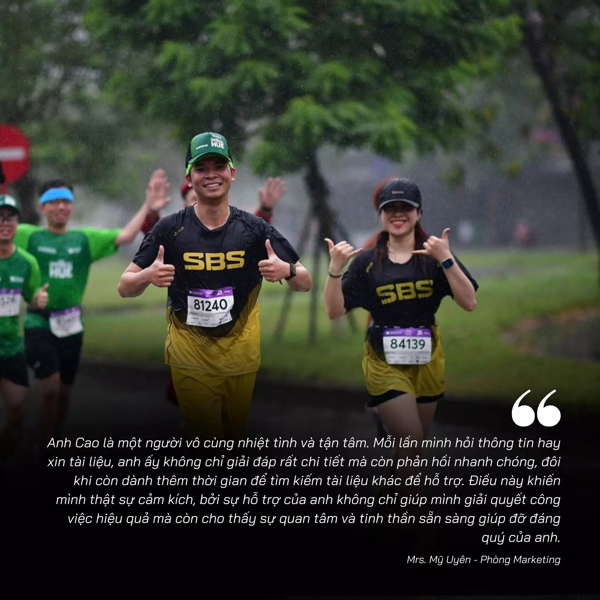 Tinh thần cởi mở và sự chân thành đã giúp Cao nhanh chóng hòa nhập, trở thành một mảnh ghép không thể thiếu trong đại gia đình SBS. Hành trình phía trước chắc chắn còn nhiều thử thách, nhưng SBS chúc Cao sẽ tiếp tục vững bước, lan tỏa cảm hứng và kết nối những người xung quanh. SBS tự hào vì có bạn, và tập thể luôn mong chờ những dấu ấn tuyệt vời mà bạn sẽ tạo ra.