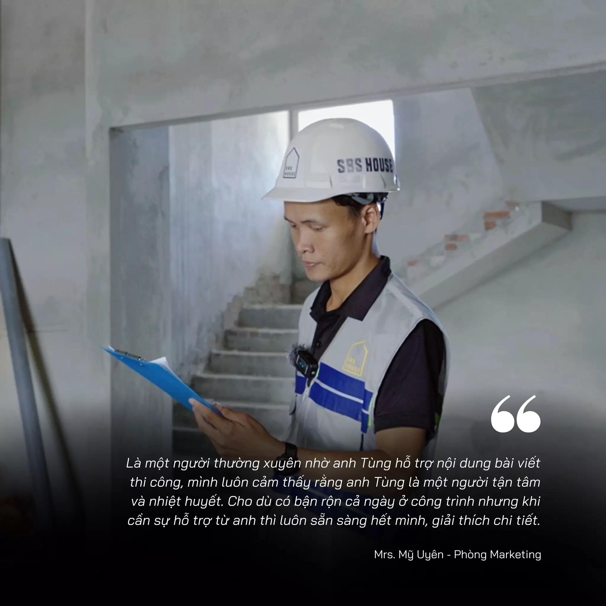 Nếu chỉ nhìn vào số lượng công trình Tùng đã giám sát hay vai trò hiện tại, có lẽ ta chỉ thấy bề nổi. Bởi điều quý giá nhất anh mang lại cho SBS còn là niềm tin từ đồng nghiệp và khách hàng. Khách hàng cảm nhận sự tận tâm, đồng nghiệp học hỏi từ sự cẩn trọng, nhiệt tình và chuyên nghiệp của anh. Những người thầy, người thợ nhìn thấy sự nghiêm khắc nhưng không kém phần vui vẻ và hòa đồng từ anh.