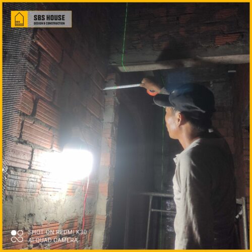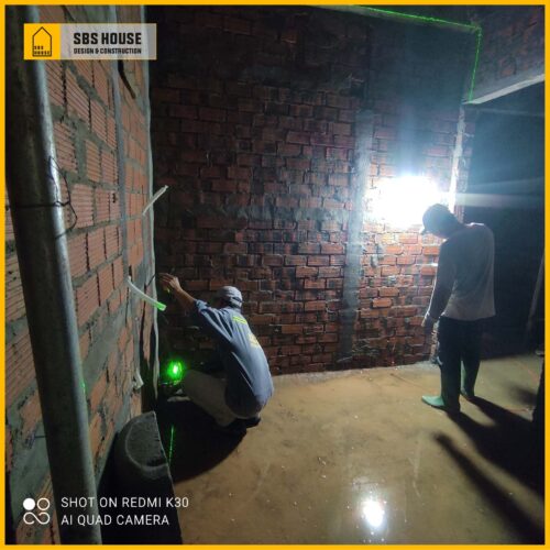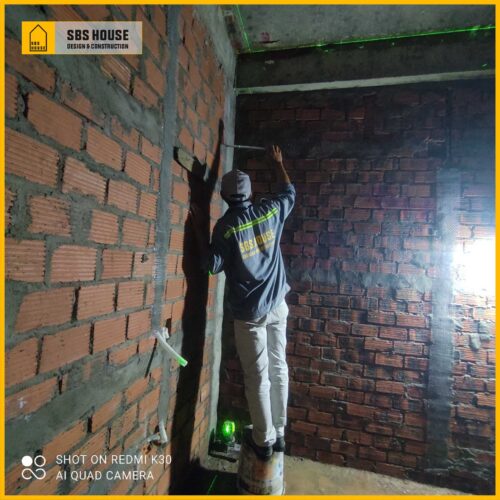 Thông thường, để ghém tường, thợ có thể sử dụng gạch vỡ, vữa hoặc các mốc phụ trợ nhằm tạo điểm chuẩn cố định trên bề mặt tường. Tuy nhiên, để tăng độ chính xác và hạn chế sai số, tại SBS HOUSE, chúng tôi áp dụng thêm hệ thống máy laser chuyên dụng. Máy laser giúp xác định cao độ, phương ngang – phương đứng một cách tuyệt đối, từ đó đảm bảo công tác ghém tường được thực hiện đồng bộ, chính xác và đạt tiêu chuẩn cao nhất.