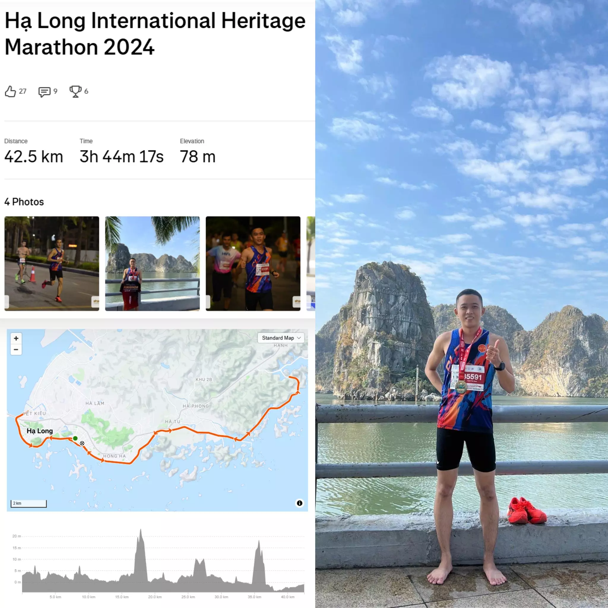 Mới đây, tại giải Halong International Heritage Marathon 2024, Quân tiếp tục thử thách bản thân ở cự ly 42km – được biết đây là lần thứ 3 anh chinh phục cự ly này. Kết quả, anh cán đích với thời gian 3g44p17s, rút ngắn 13 phút so với lần thi gần nhất. Đó là một thành tích ấn tượng, nhưng đằng sau con số ấy là cả một hành trình dài mà Quân đã miệt mài, vượt qua mọi giới hạn để chinh phục chính mình.