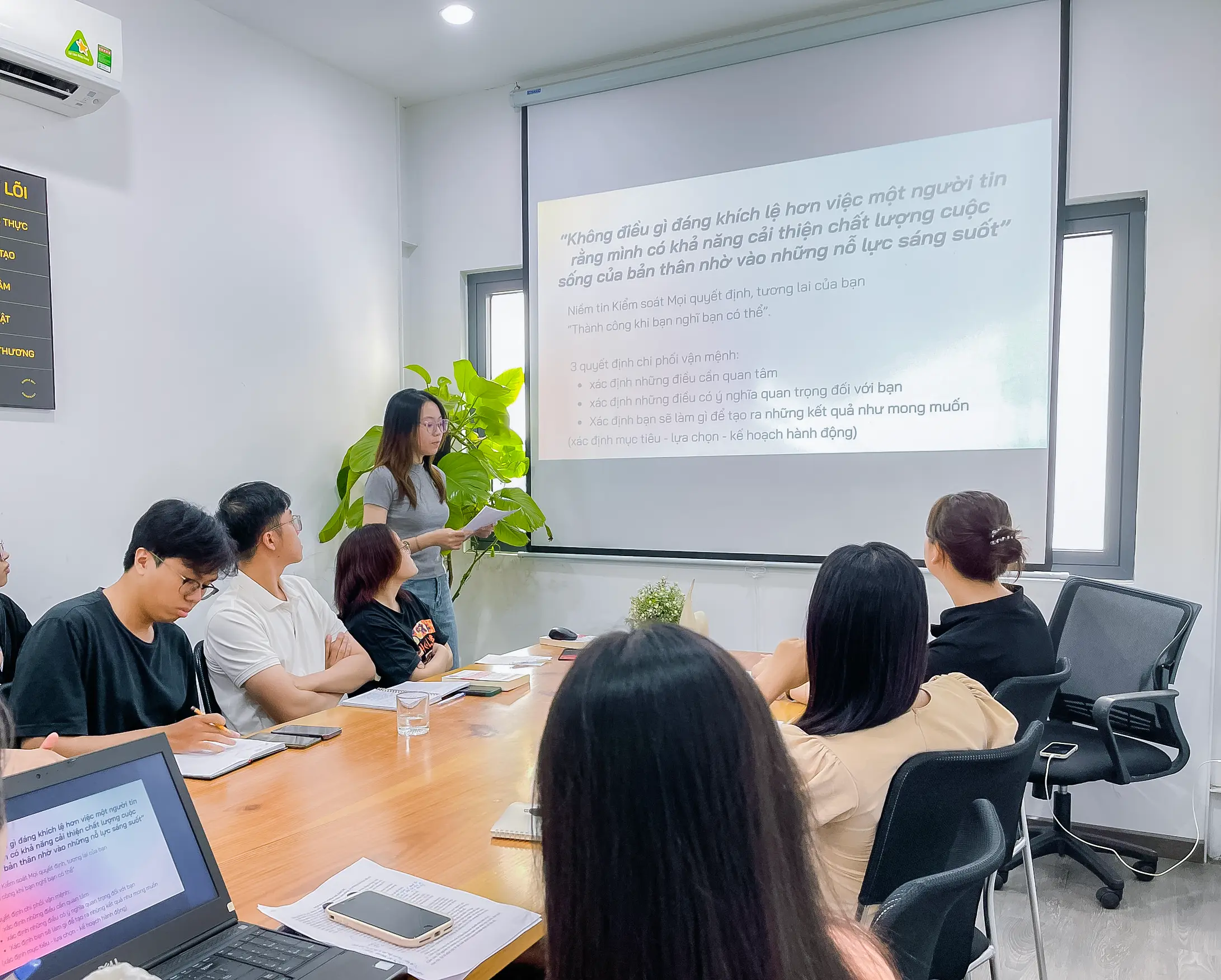 Là thành viên nhỏ tuổi nhất, Hoài Khanh cũng mang đến nội dung thú vị để chia sẻ với các anh chị trong phòng. Với 4 bài học được đúc kết được, kết hợp với những trải nghiệm bản thân, Khanh đã có phần chia sẻ thú vị và bổ ích về động lực sướng – khổ, làm chủ cảm xúc bản thân.