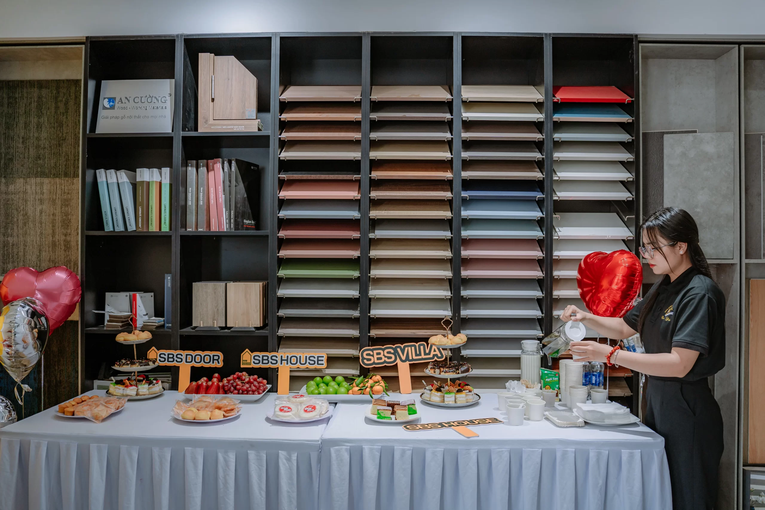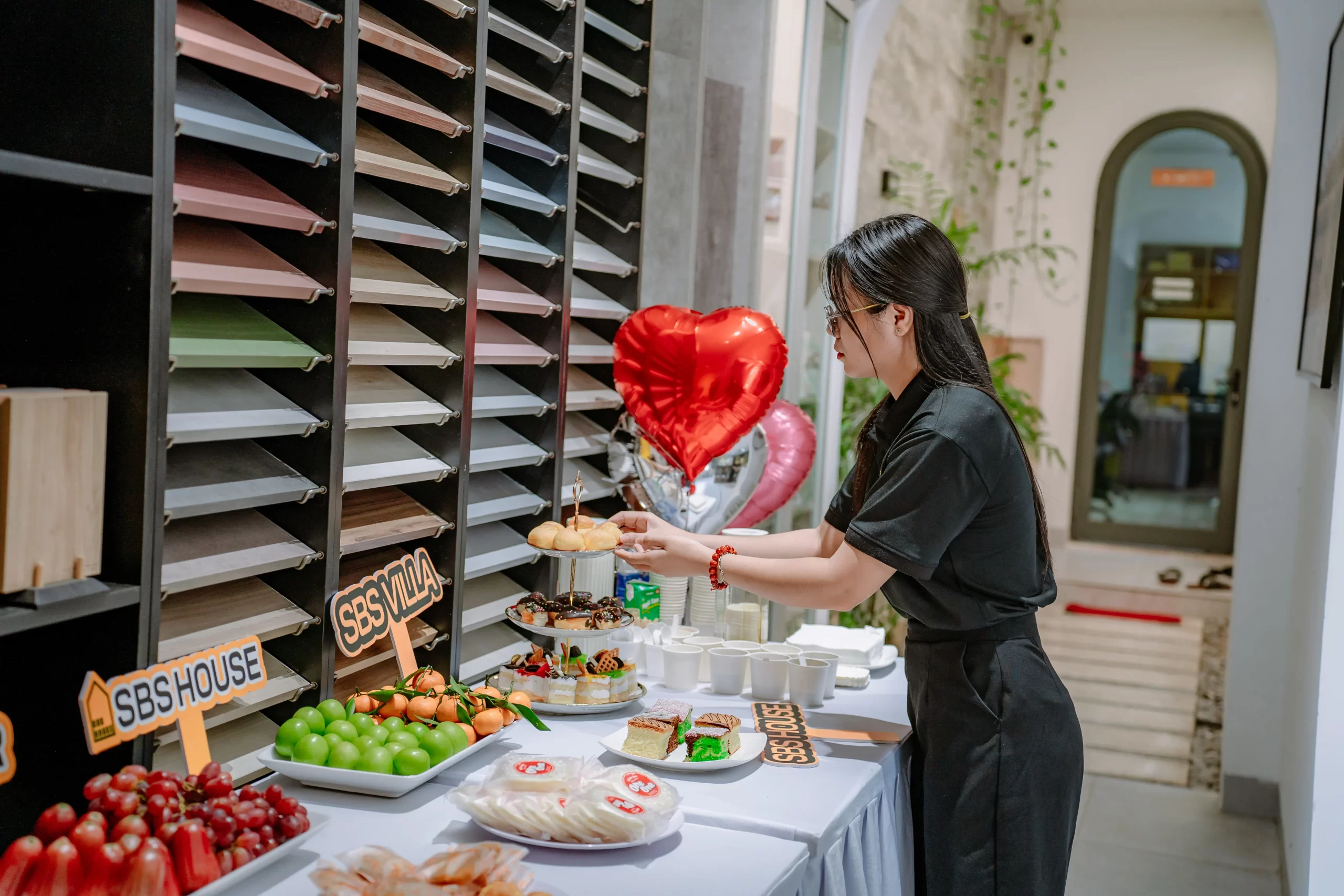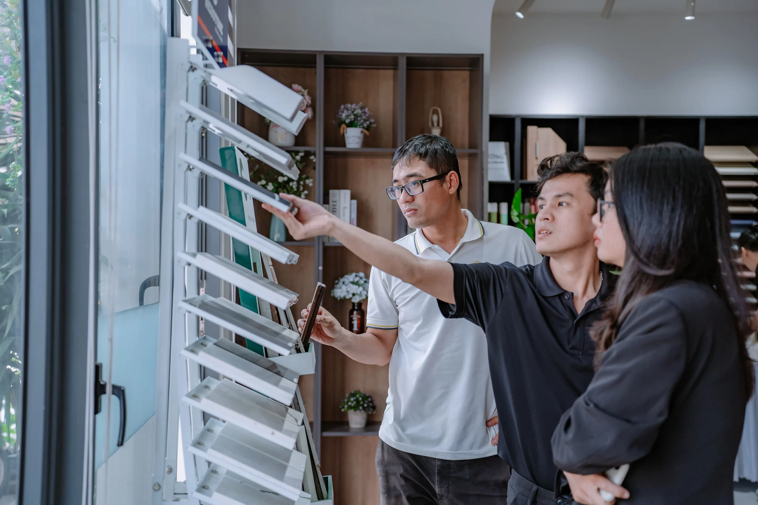 Đội ngũ SBS HOUSE tư vấn chi tiết cho khách mời về các đặc điểm trong sử dụng của các loại vật liệu
